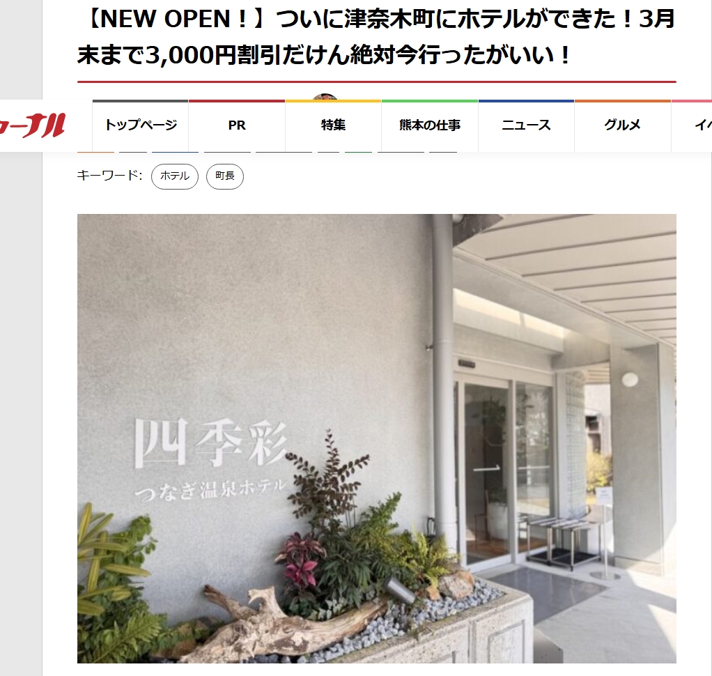 肥後ジャーナルでつなぎ温泉ホテル四季彩が紹介!